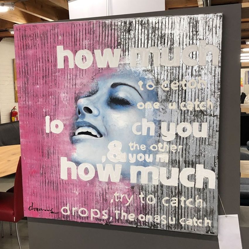 Het schilderij Dreams Paint Shower is uitgevoerd in de maat 100 x 100 cm.