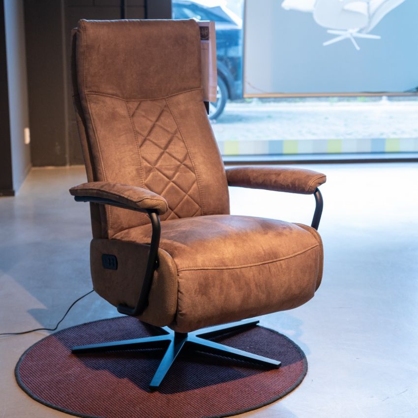Relaxfauteuil Hera van Henders & Hazel combineert comfort met karakter. De achterkant is uitgevoerd in rocky taupe, de voorkant in calabria lever – afgewerkt met zilveren stiknaad. Voorzien van metalen armleuningen en een 2-motorig systeem voor verstelbare ondersteuning. Een stijlvolle keuze voor wie houdt van verfijnde materialen en functioneel design.