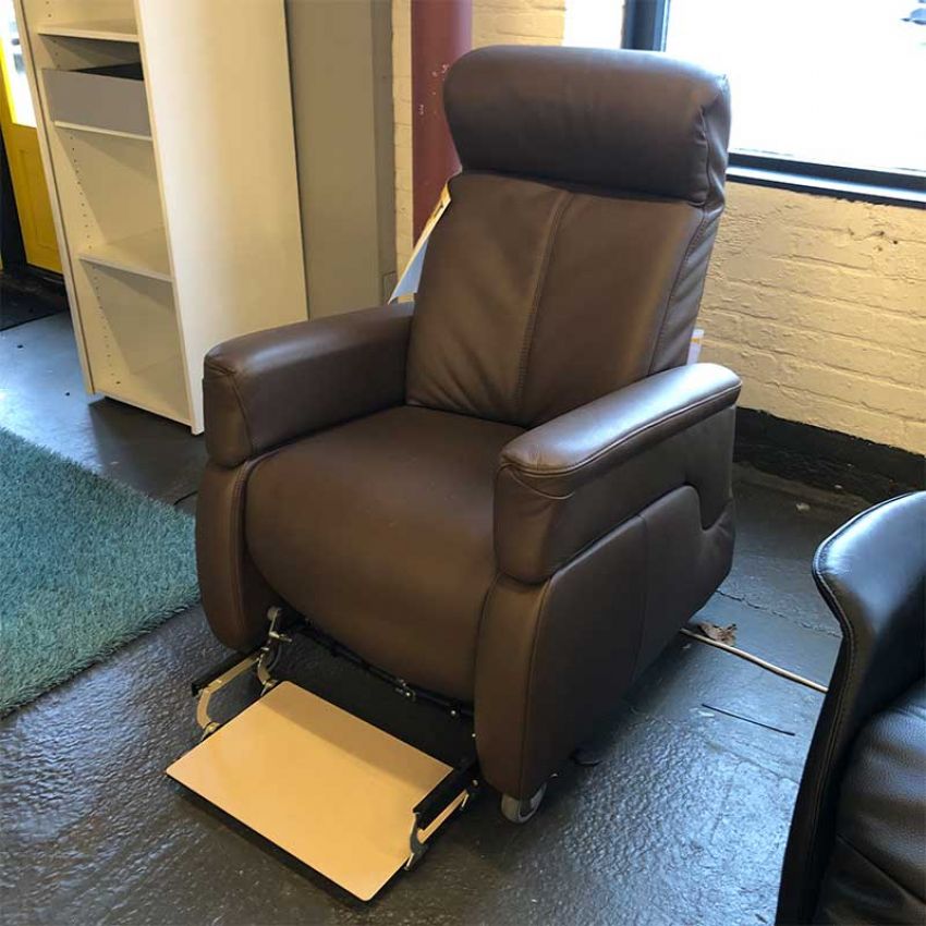De Himolla 7314 relaxfauteuil is uitgevoerd in leder 24 Longru Erde en heeft twee motoren én sta-op functie.