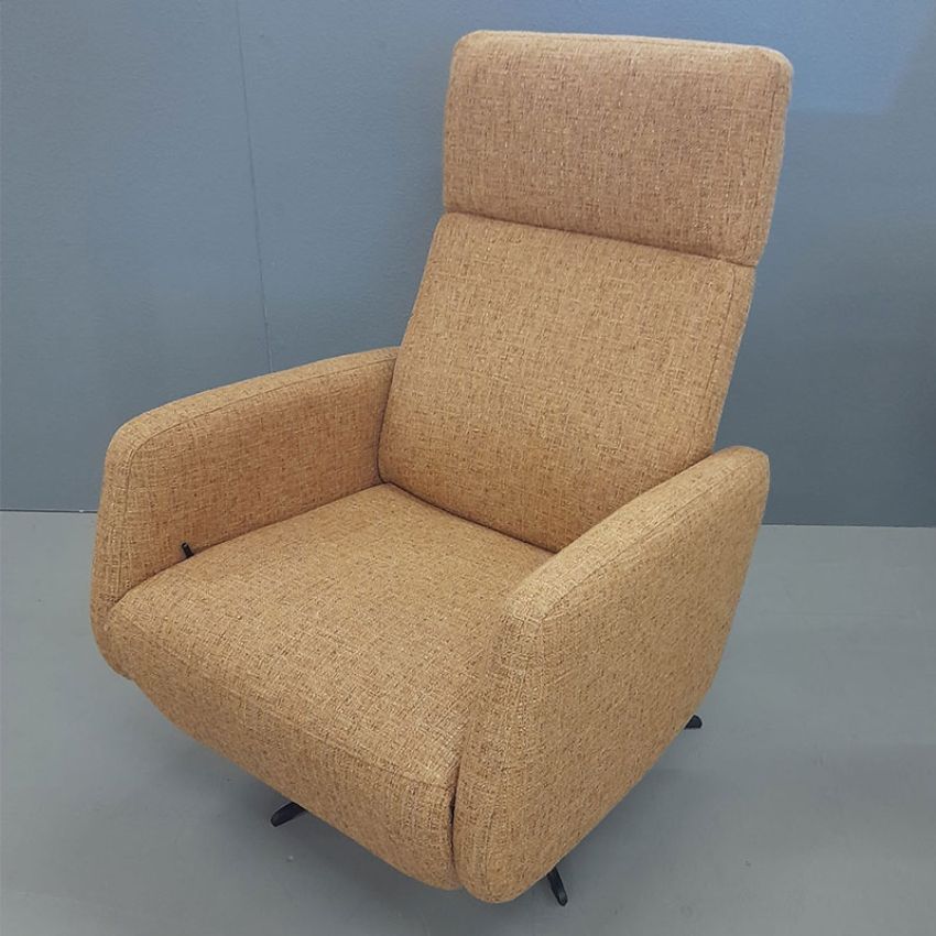 Fauteuil Anita is bekleed met Chronotex cinnamon (3094) stof en rust op een elegant zwart onderstel. Dankzij het Manuel Superior systeem en de discrete zwarte hendel pas je de rug- en hoofdstand nauwkeurig aan. De small uitvoering met compacte vormgeving is ideaal voor lichte ruimtes en biedt verrassend dynamisch comfort.