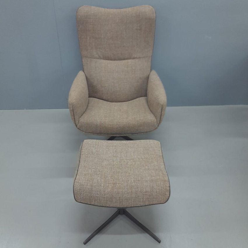 Jori Time out fauteuil en hocker, uitgevoerd in de stof Siena C0004 met gelakt 4-ster onderstel.