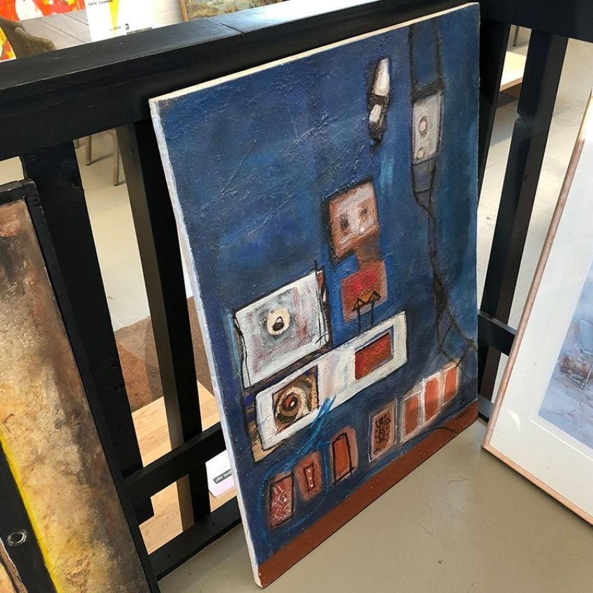 Het schilderij Latter is een werk van C.M. Kabre uit Burkina Faso in de maat 92x76 cm.