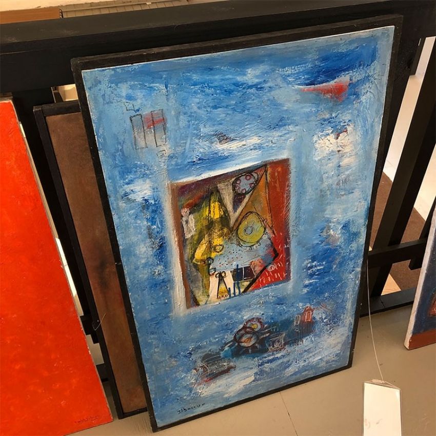 Het schilderij Le Triangle Blue is een werk van Ilboudou uit Burkina Faso.