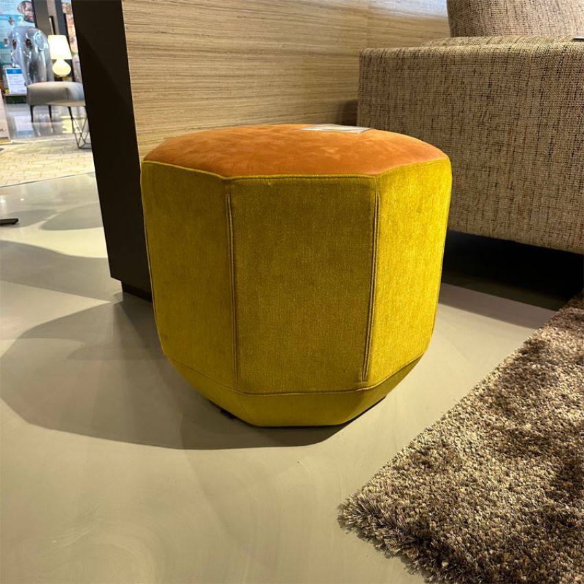 De Leolux Amulet hocker is uitgevoerd in leder Danza Mocha in combinatie met de stof Lucir 800 Topaz.