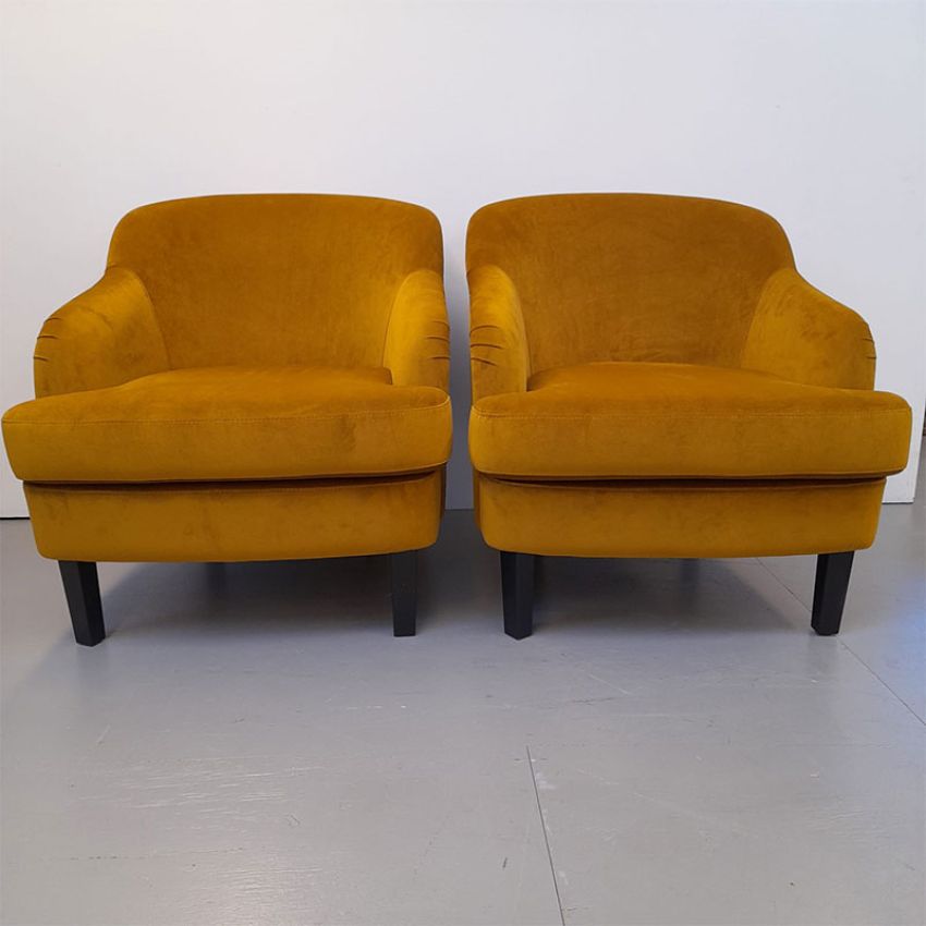 Set van 2 fauteuil Leonie van het merk Masée uitgevoerd in de stof earth 06 mustard.