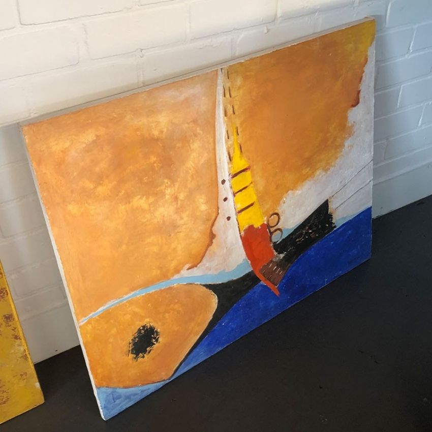 Schilderij nummer 25 is geschilderd door Hippolyte Delavolta uit Burkina Faso in de maat 80x95 cm.